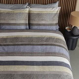 - Striped textured printed duvet cover set in shades of blue, brown and beige