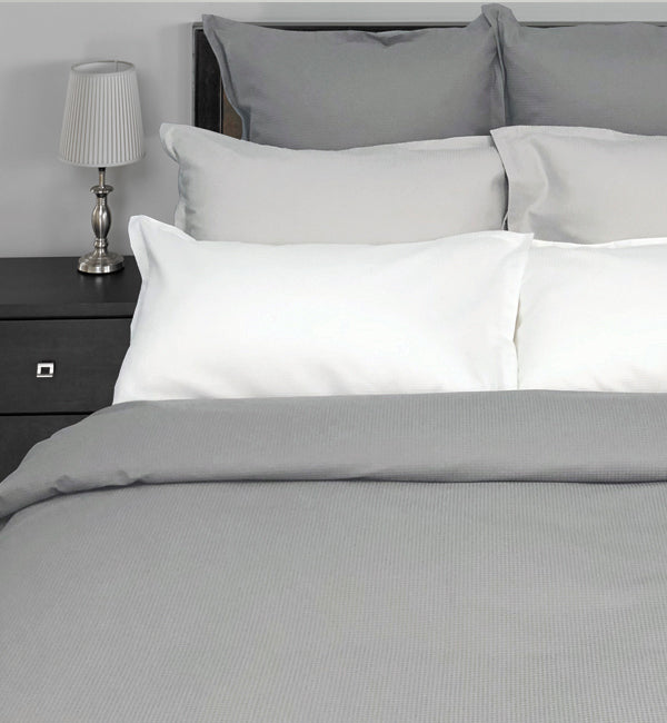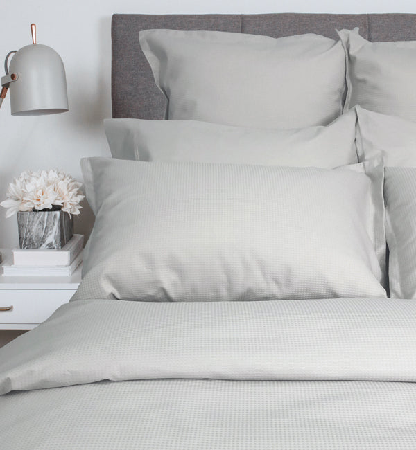 Pique is a lightweight, small-scale waffle for those who want a touch of texture in their bedroom. 100% Cotton, woven in Portugal and made here in Canada.