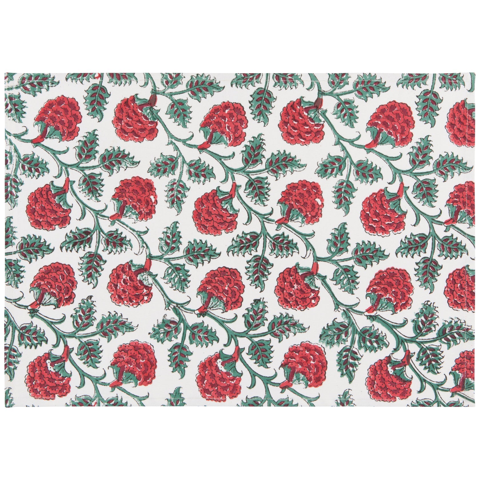 Block printed using a traditional mud-resist technique and natural dyes, these table linens are sure to invigorate the senses of all who gather around them.