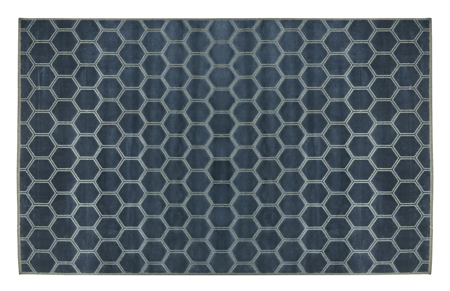Based on our gorgeous Manipur velvet fabric, this stylish floor rug features perfectly scaled viscose hexagons in a deep delft tone with a unique cool woven wool ground. Woven on a specialist jacquard velvet loom in Belgium, this stylish rug makes a contemporary statement in your interior scheme. The low dense pile with a subtle sheen gives a practical finish and minimizes marking.
