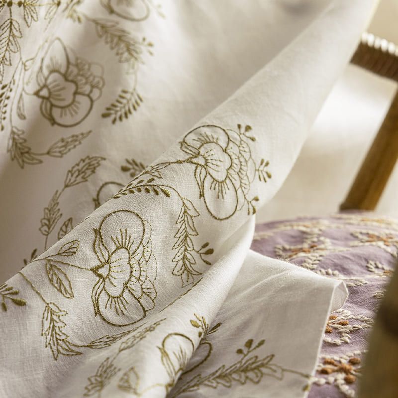 • French linen tablecloth printed and embroidered (170 g/m²)