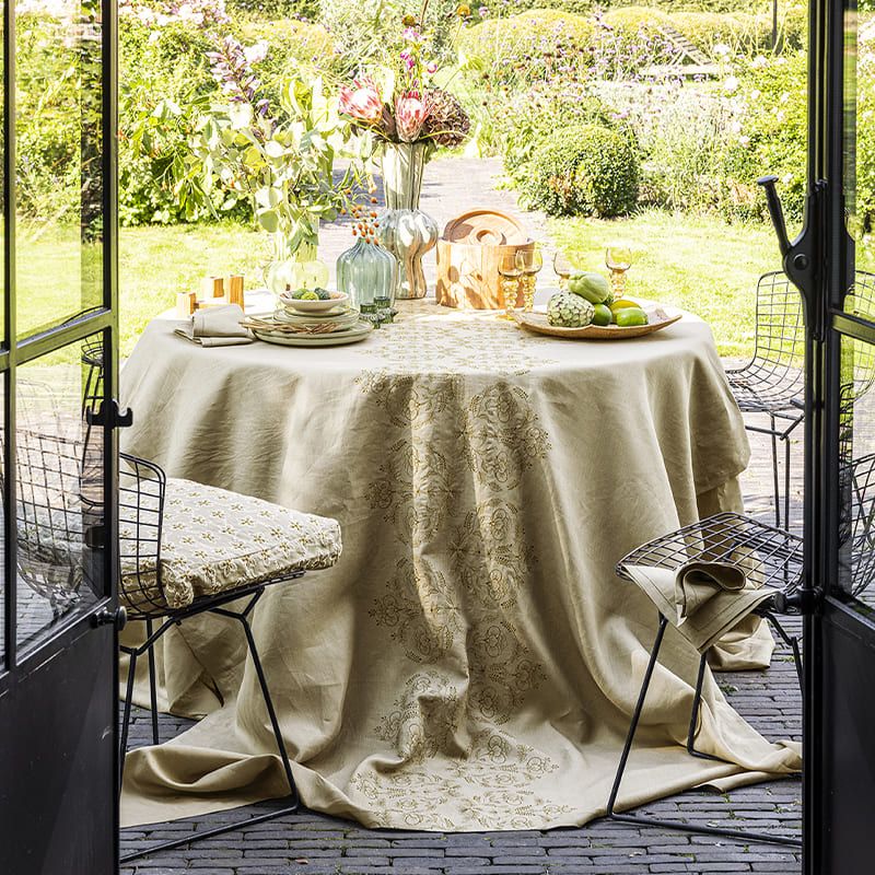 Linen, the perfect combination of elegance and robustness, adds a touch of authentic charm to any table. It's a quality material that never loses its superb look after repeated use and frequent washing, and retains its natural, refined allure. Enhanced by our expertise and delicate embroidery, our Paradis linen tablecloth is a beautiful, durable product, proudly made in France and OFG certified.
