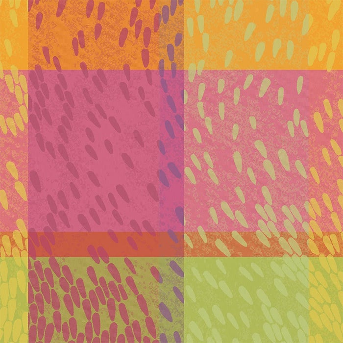 The Mille Sources Berlingot Jacquard Tablecloth in presents a sweeping canvas of vibrant candy-inspired stripes, woven in France from cotton jacquard. This highlights the flow of color and the intricate texture of the weave, creating a table setting that feels both lively and thoughtfully crafted. It brings a bright burst of character to celebrations and everyday moments alike.