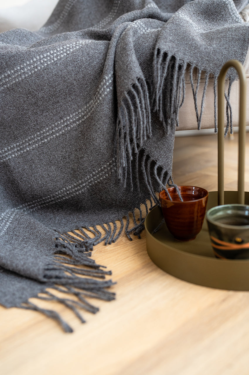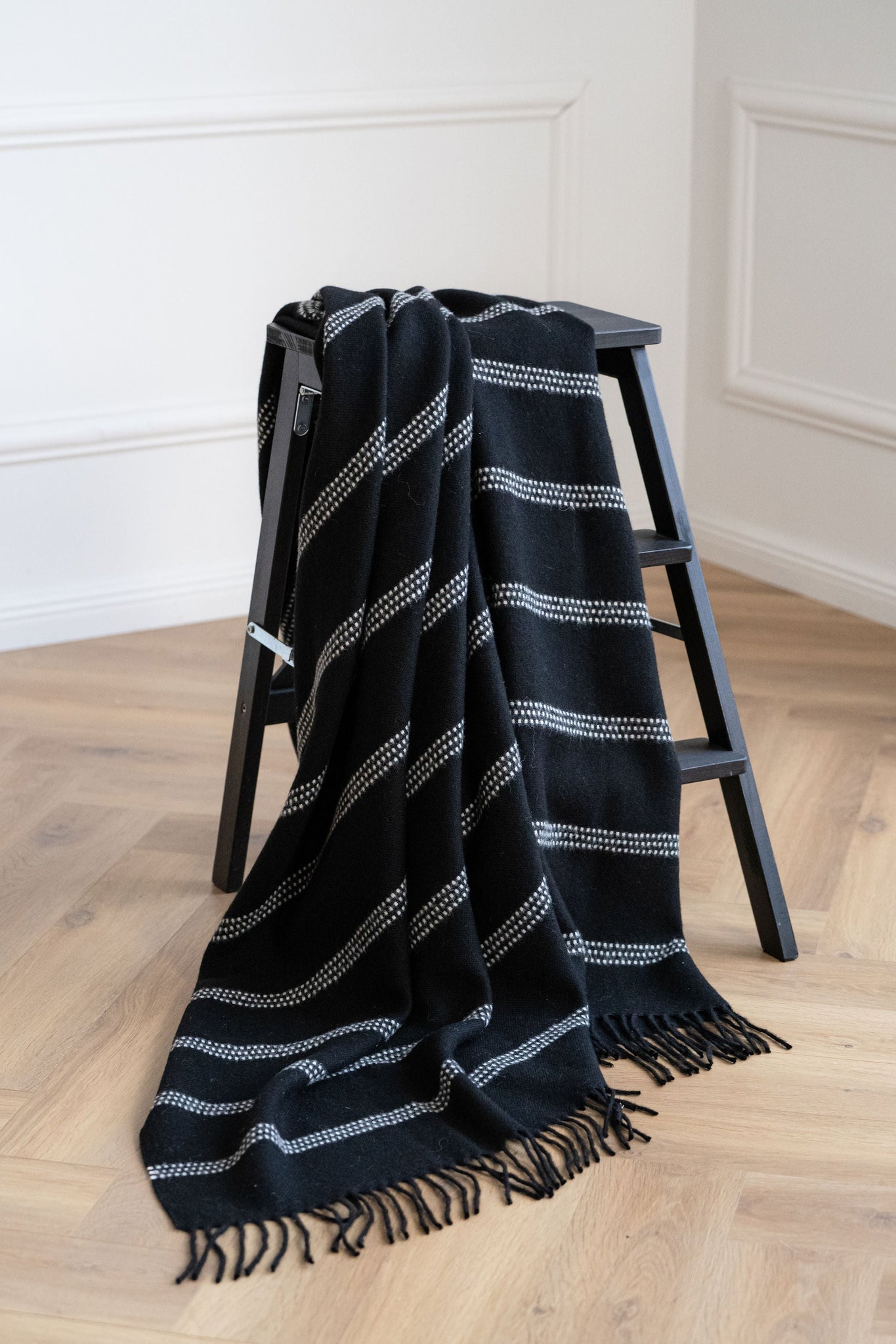 Our heavier weight throw has three dotted stripes evenly spaced across the entire throw. The stripes add a subtle grace to the design.