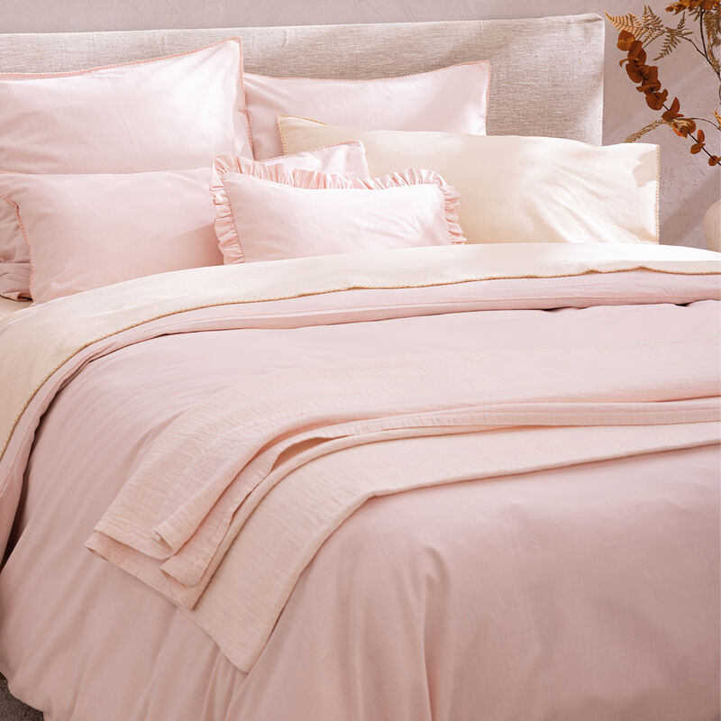 This range of plain 100% cotton with a laid-back spirit stands out for its uniqueness. The slub yarn gives a rough and irregular look to the washed cotton. This collection brings a warm and authentic touch to your interior, combining comfort and elegance.