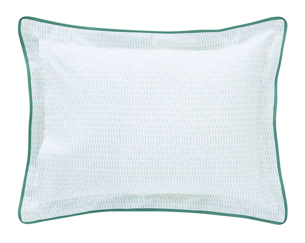 Enchantement shams, flat sheets, and pillowcases are embellished with a green-coloured inset trim finishing.