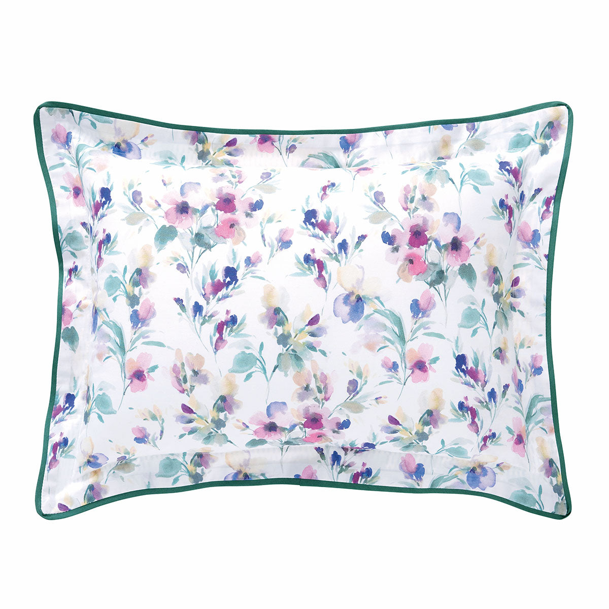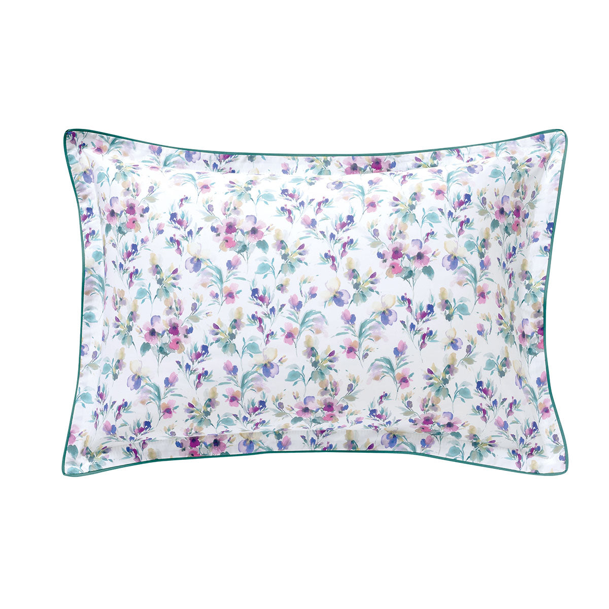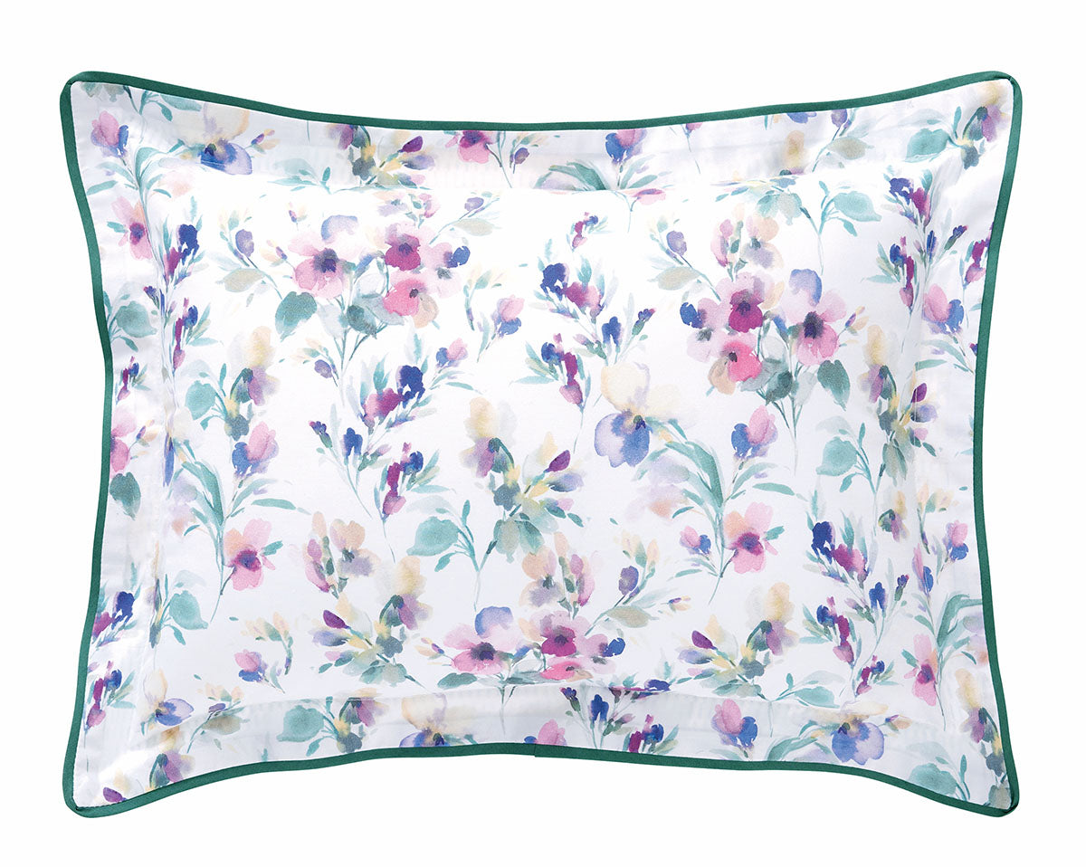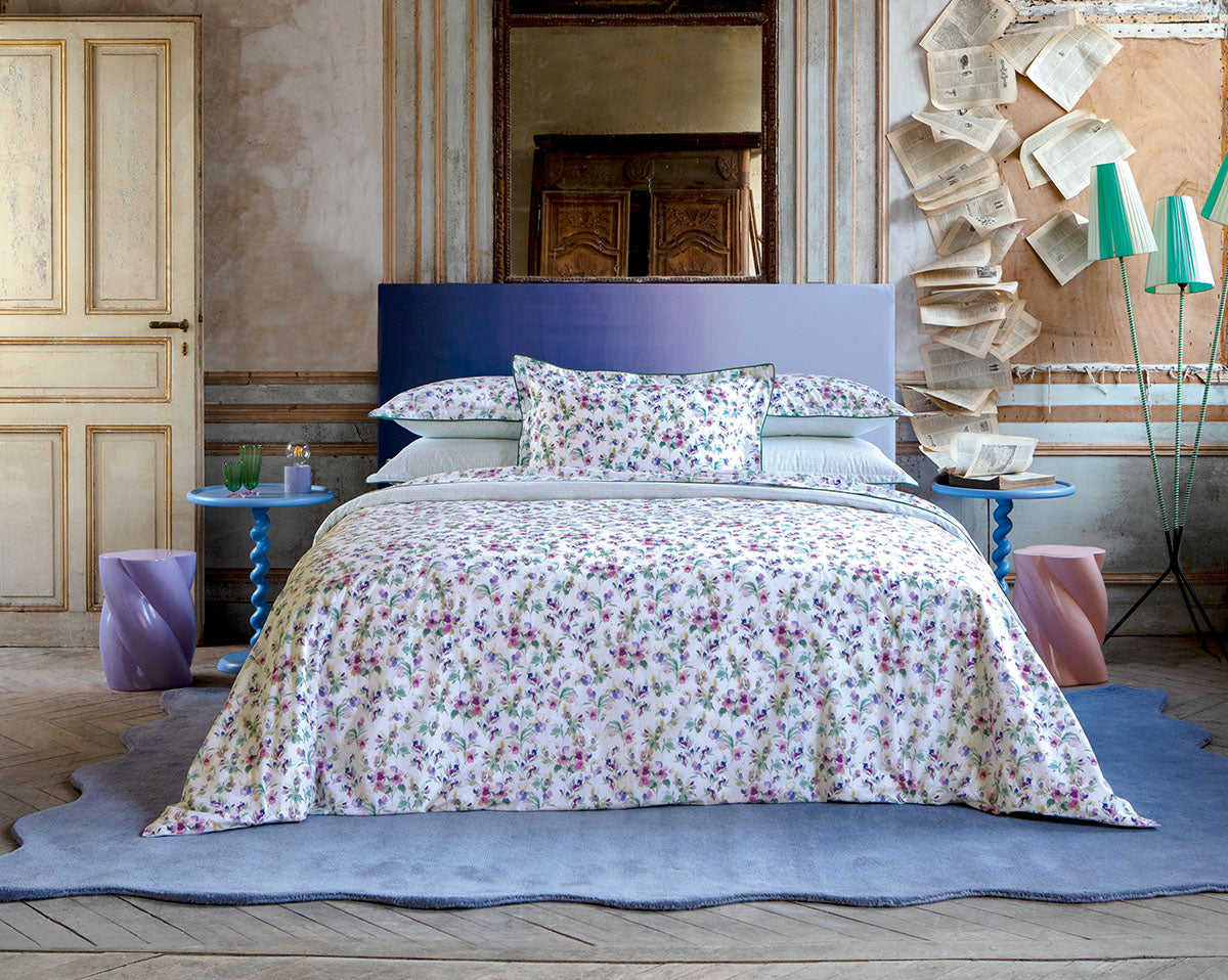 Enchantement bedding is a very romantic watercolour design of pansy flowers coordinated with a contemporary design of small lines which transports us to a world between dream and reality. The flowers in evanescent hues infuse a dreamlike softness. The modern small lines print coordinates with the flowers print and provides a very modern aesthetic. The soft colour palette, on a white ground, imbues a sense of peace and relaxation. Pansy flowers, with their delicate looks, actually belie their tough as steel nature; they bloom in winter, unphased by the cold.