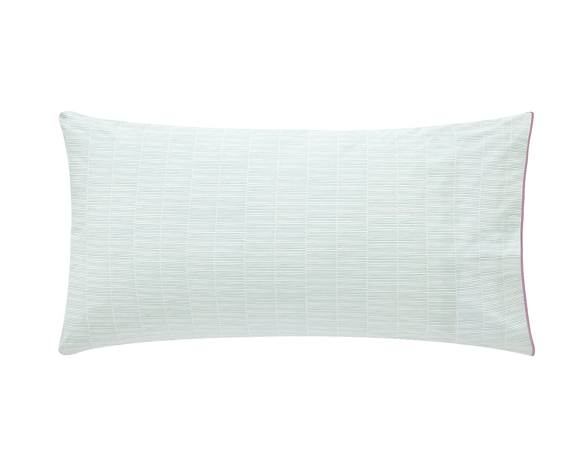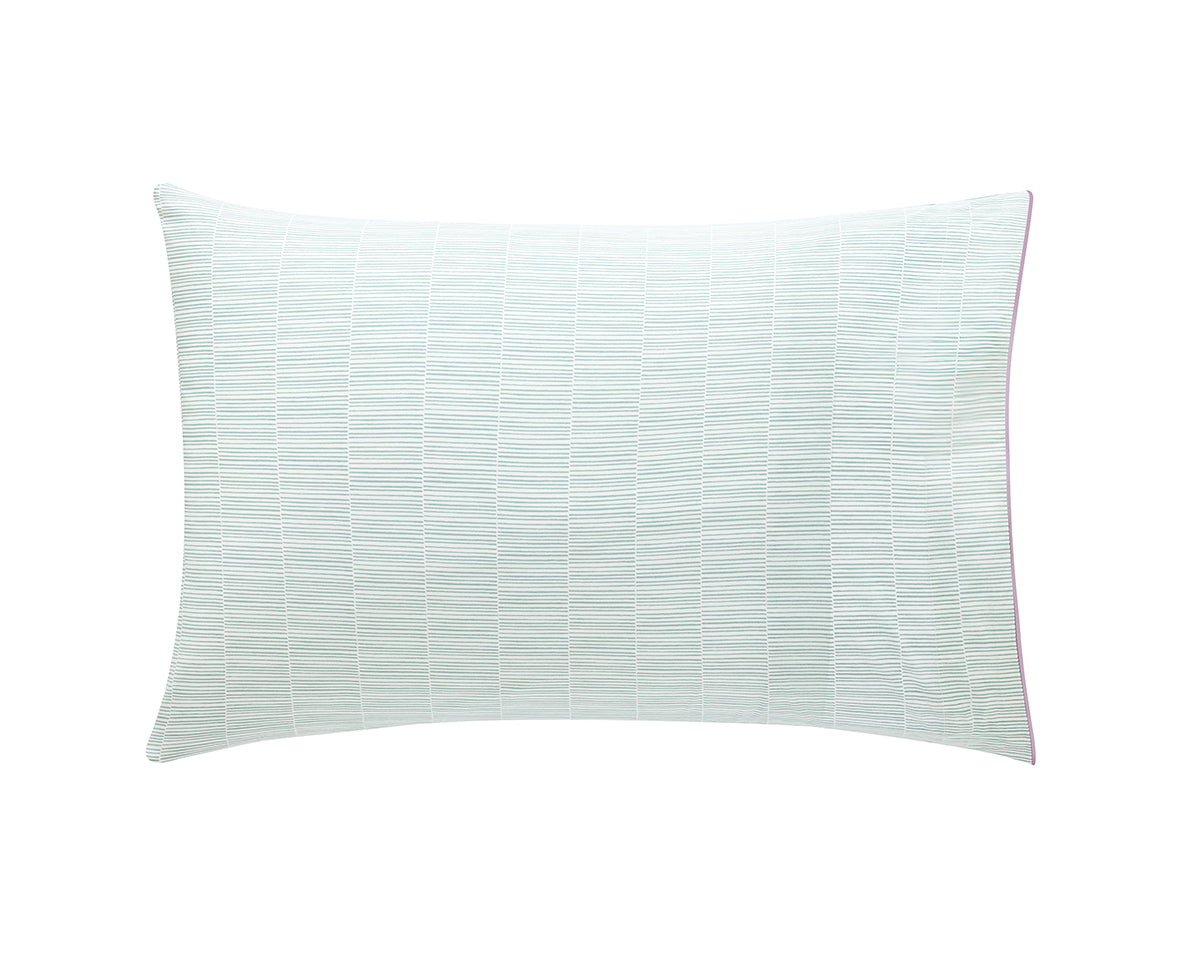 Fugace shams and pillowcases have an envelope enclosure which hides the pillow insert from view.