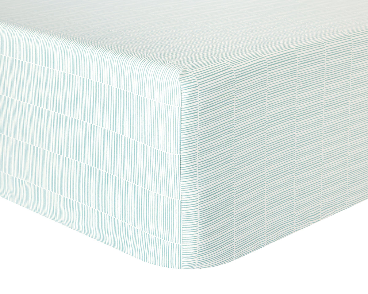 Fugace fitted sheets and pillowcases are in the horizontal stripes print.