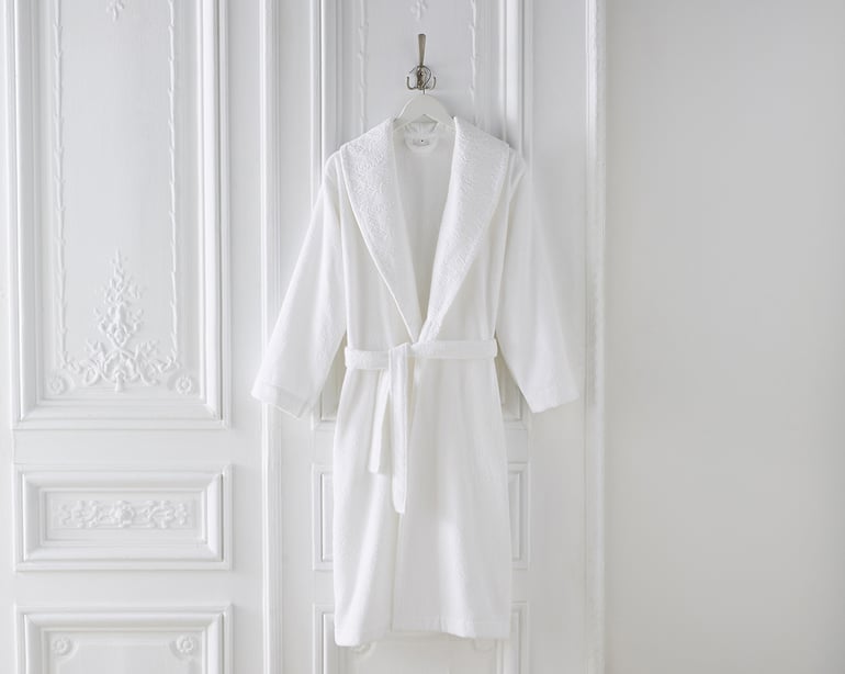 The simple, elegant white embroidery calls to mind the bathroom linens in luxury hotels. Héritage offers true elegance, timeless and immaculate.