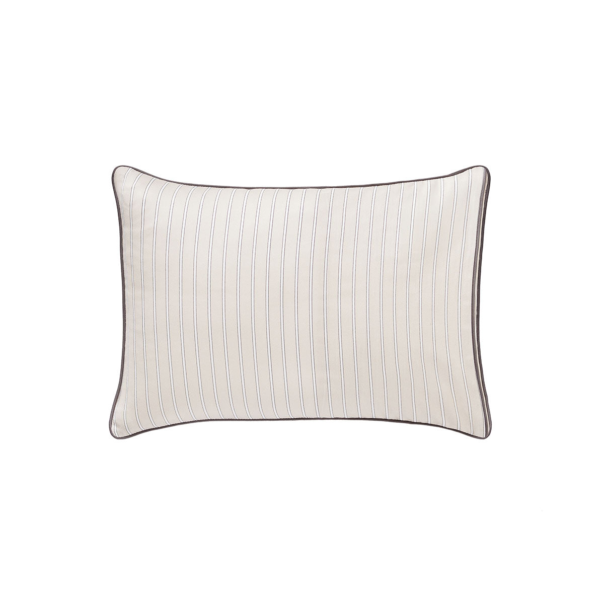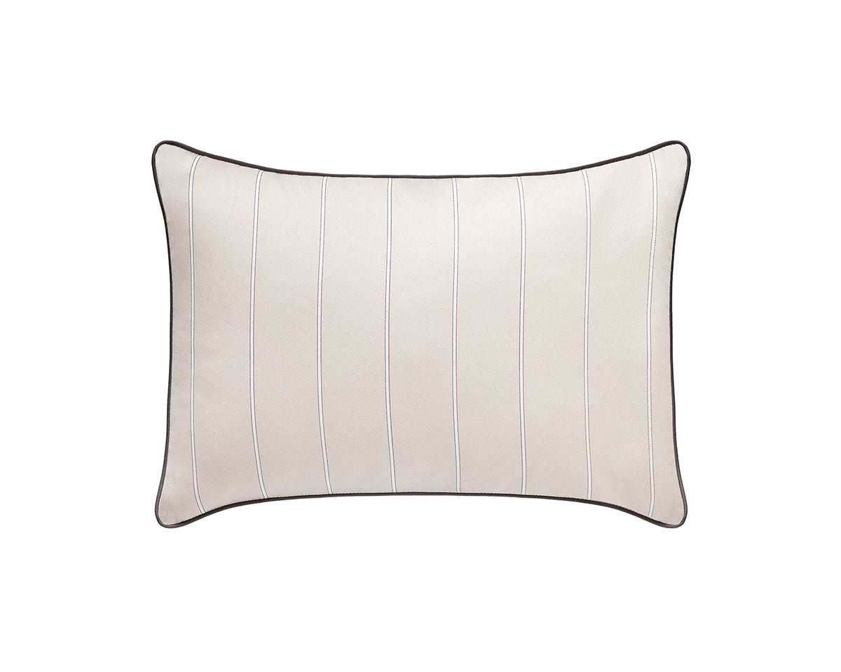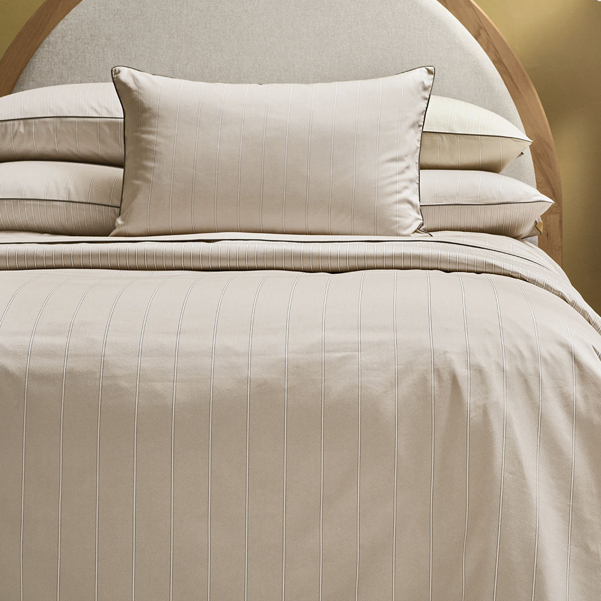 Pillowcases, flat sheets and shams are embellished with a charcoal-coloured hand guided piping detail.