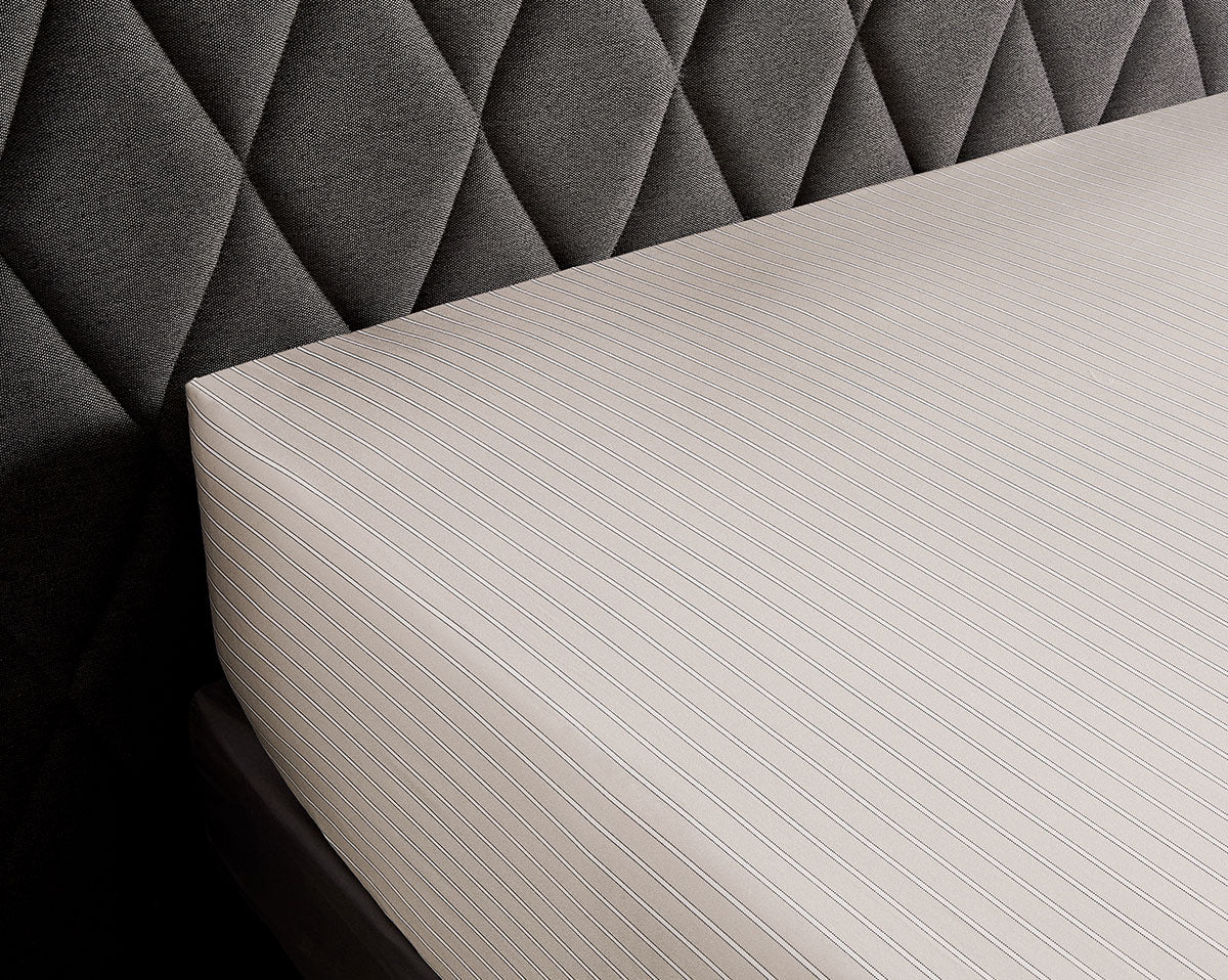 Fitted sheets and pillowcases are made with the narrow stripes print.