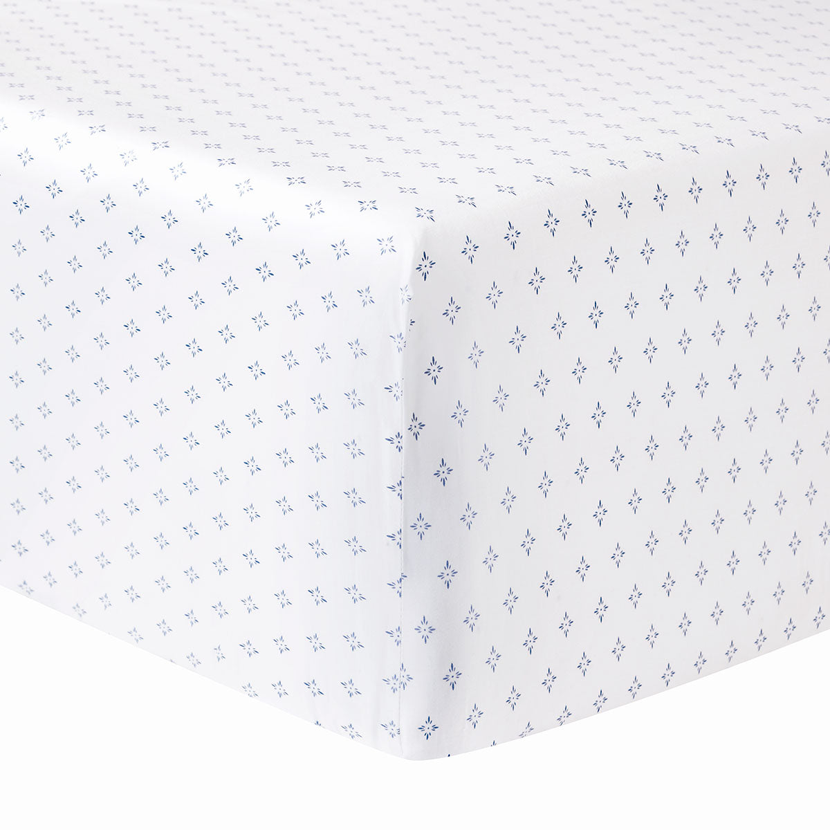 Pillowcases and fitted sheets are made with the French earthenware faïence tiles design.