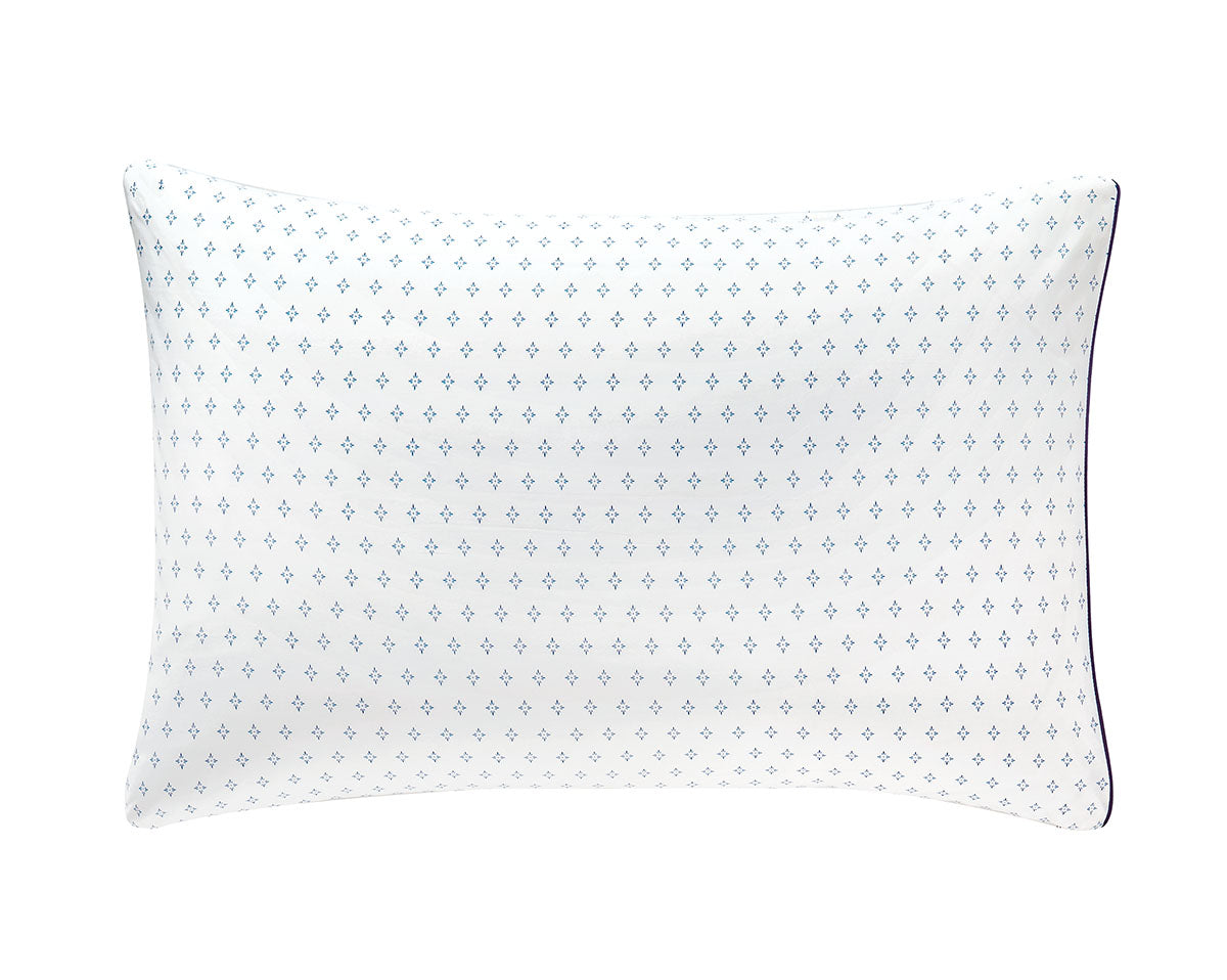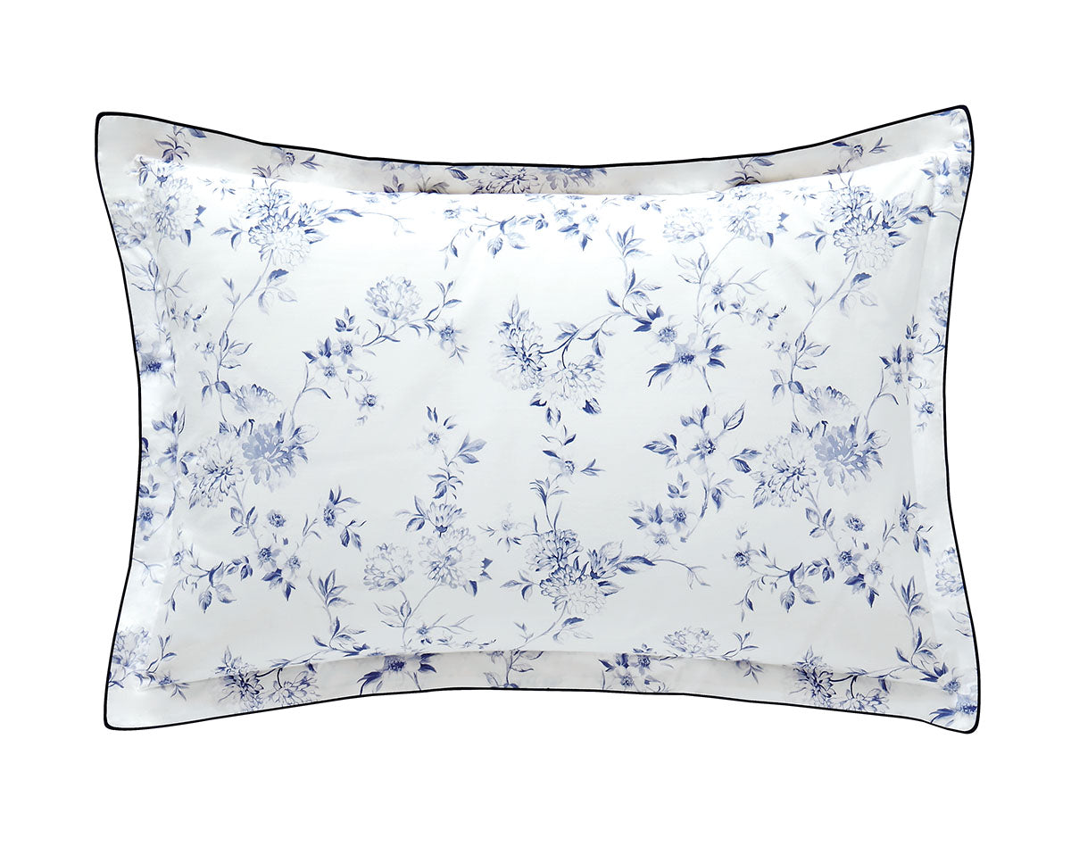 Pillowcases, shams, and flat sheets are embellished with a hand guided piping finishing detail.
