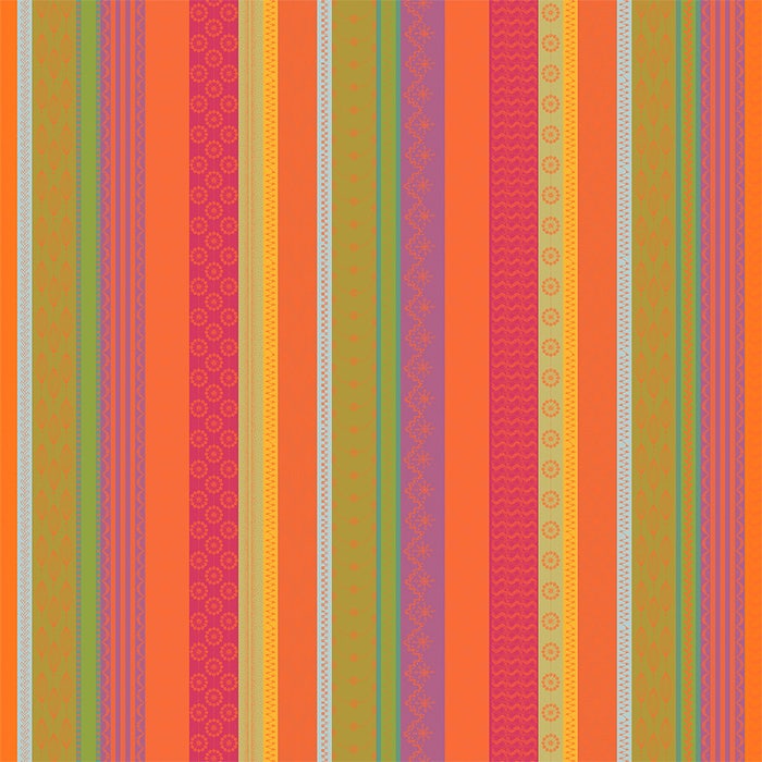 Bold, bright tones burst with lively energy through vibrant orange stripes.